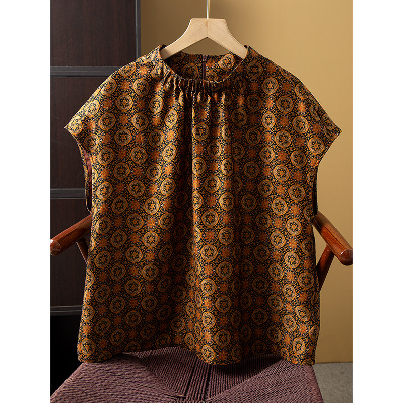 女100%桑蚕丝真丝上衣长裤 宽松显瘦两件套夏 花萝香云纱套装 丝艺
