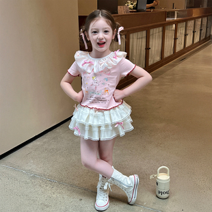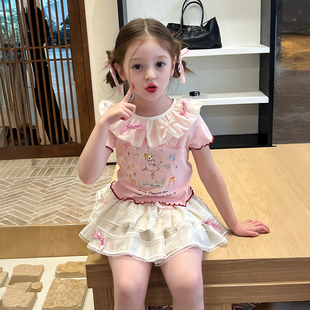 夏季 儿童宝宝印花T恤蛋糕短裙 女童撞色娃娃领套装 栀了成长记童装由