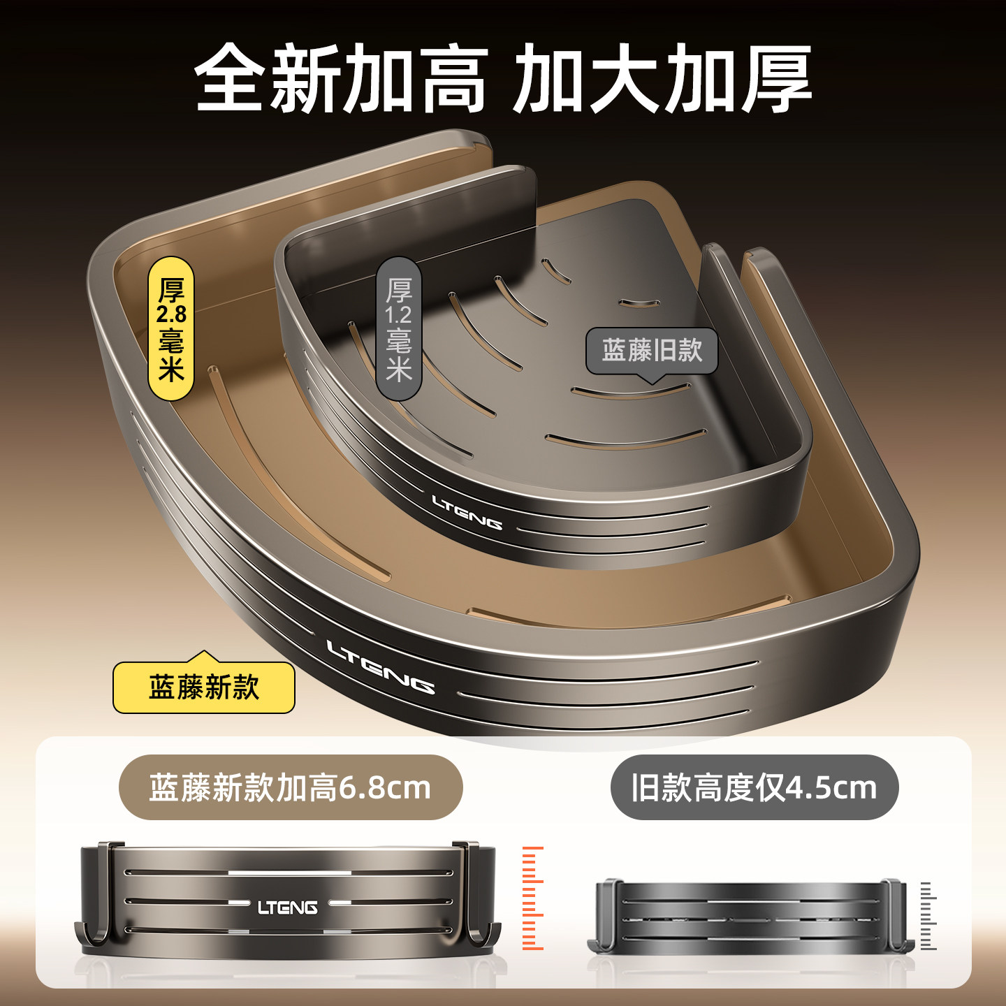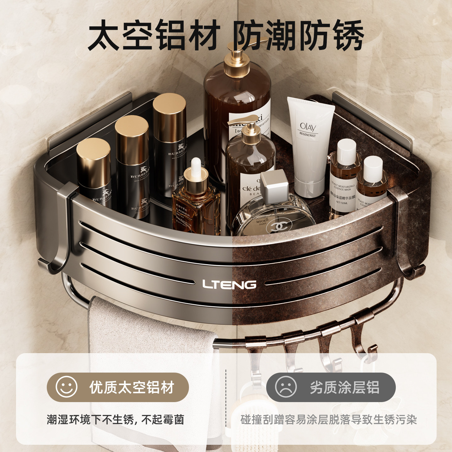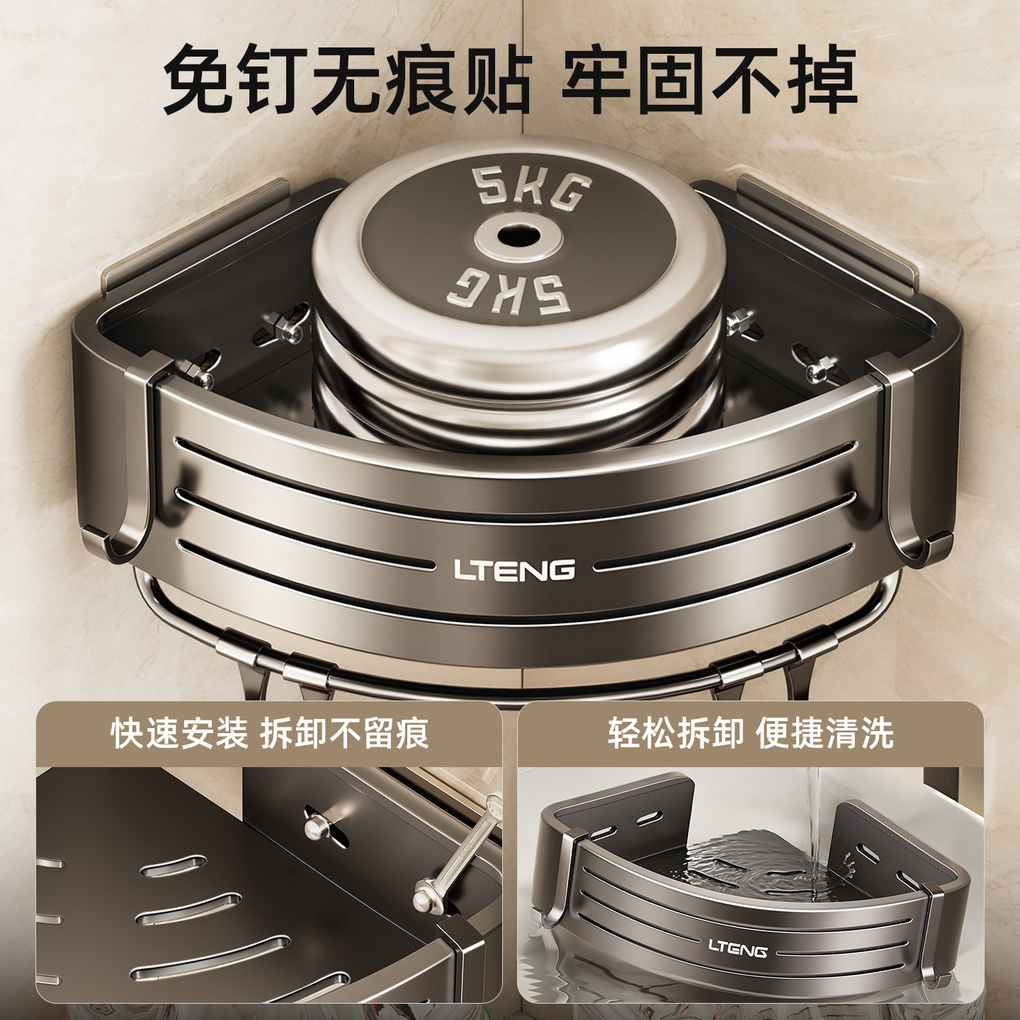 枪灰免打孔可拆卸浴室置物架卫生间三角篮壁挂架洗手间墙角收纳架由