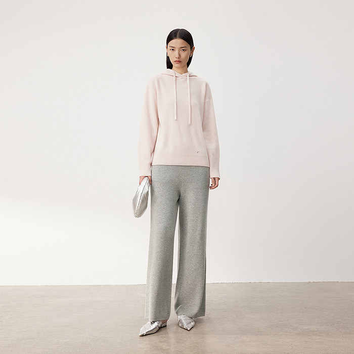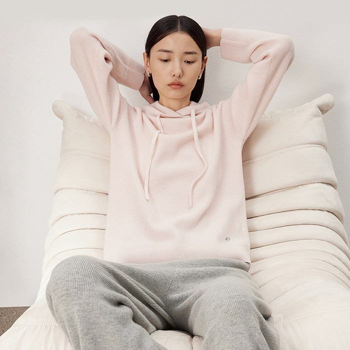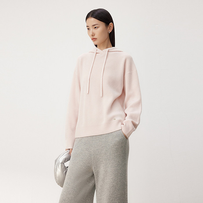 为您提供商品通勤百搭帽衫 LANCY 女粉 山羊绒连帽针织衫 薄款 朗姿2024春季 新款的详细介绍,