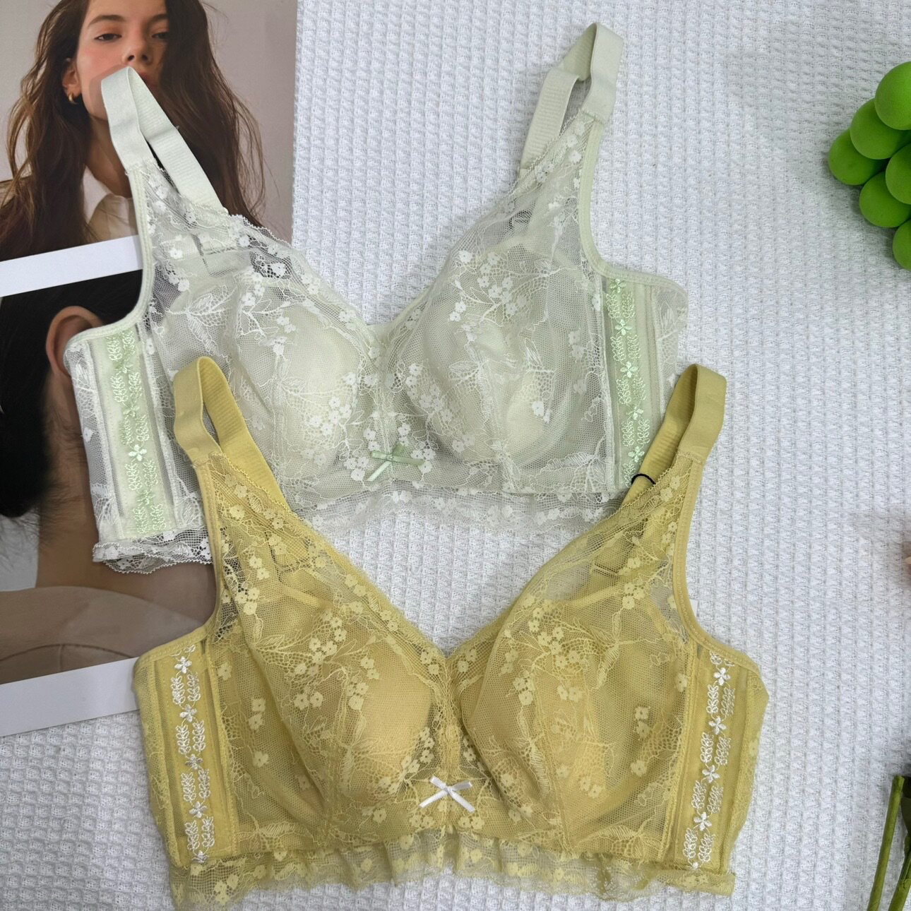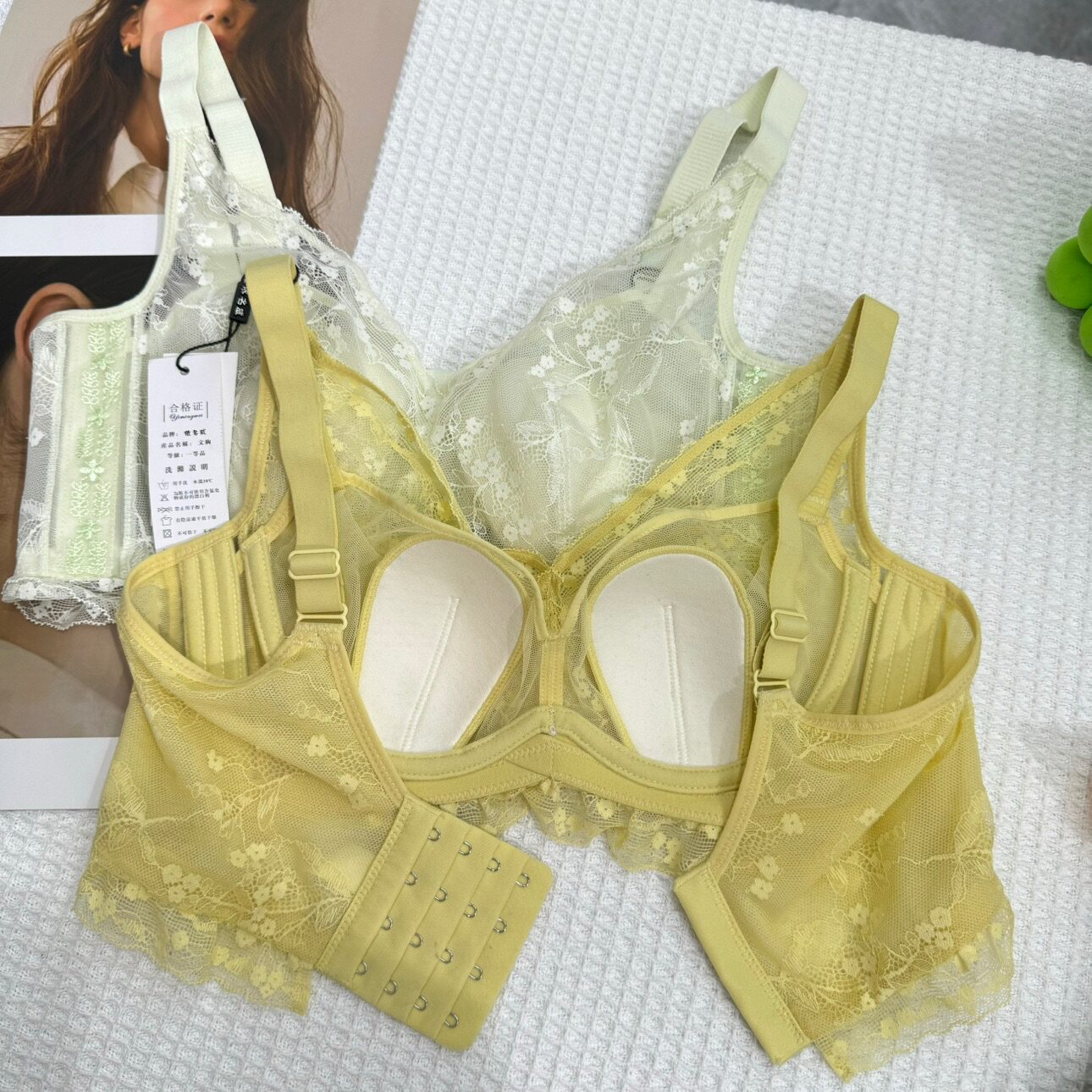 性感蕾丝大胸显小内衣软钢圈聚拢收副乳防下垂女士文胸罩2305 法式由