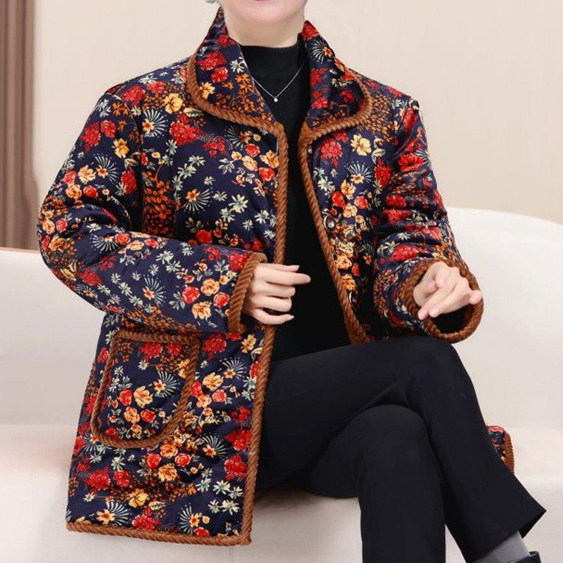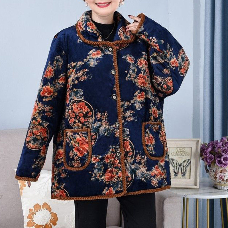 中老年女装 秋冬小花袄奶奶棉服保暖碎花上衣服 棉衣加绒外套妈妈装