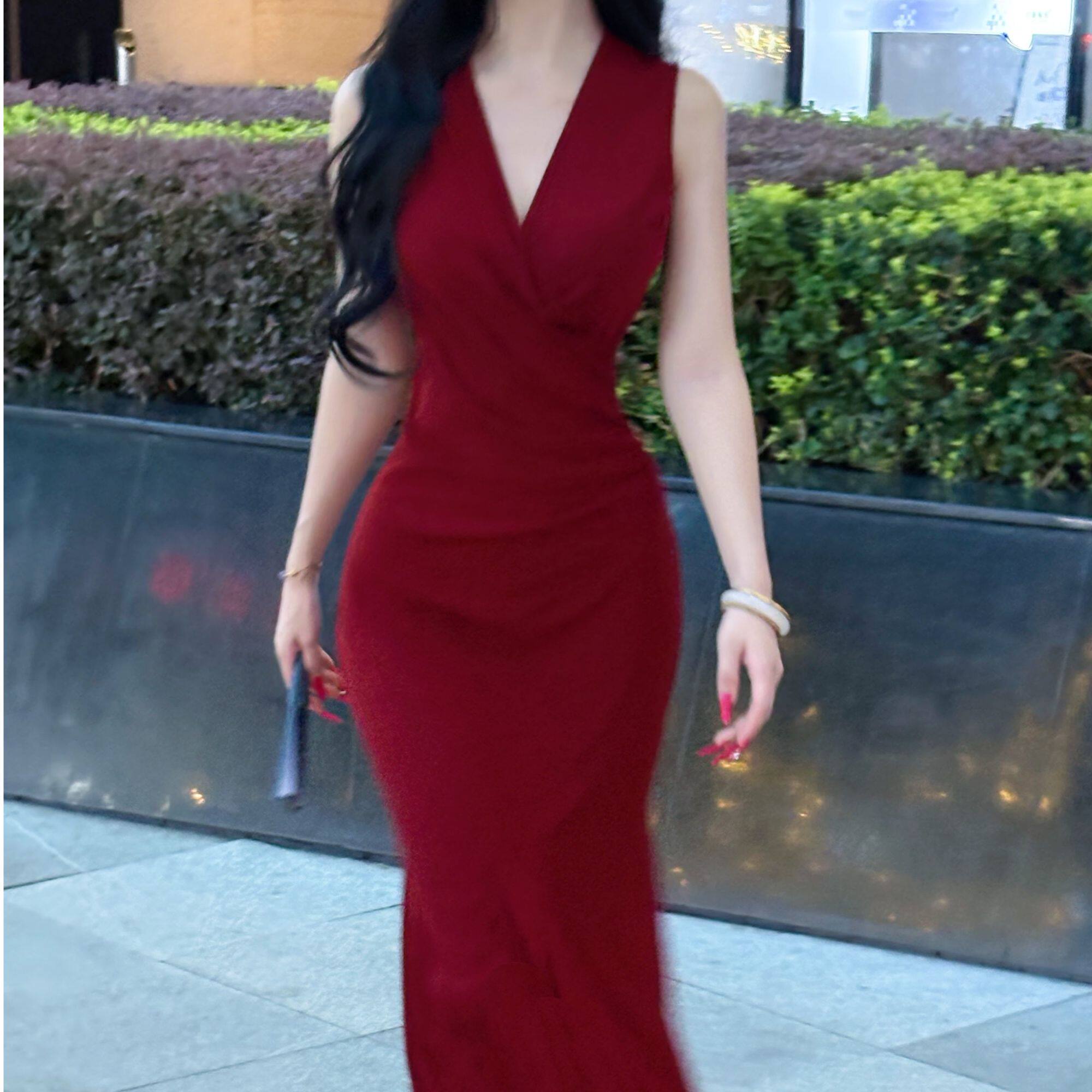 为您提供商品致命牛血红 LHMknk1画报夫人原创自制纯欲针织性感鱼尾连衣裙的详细介绍,
