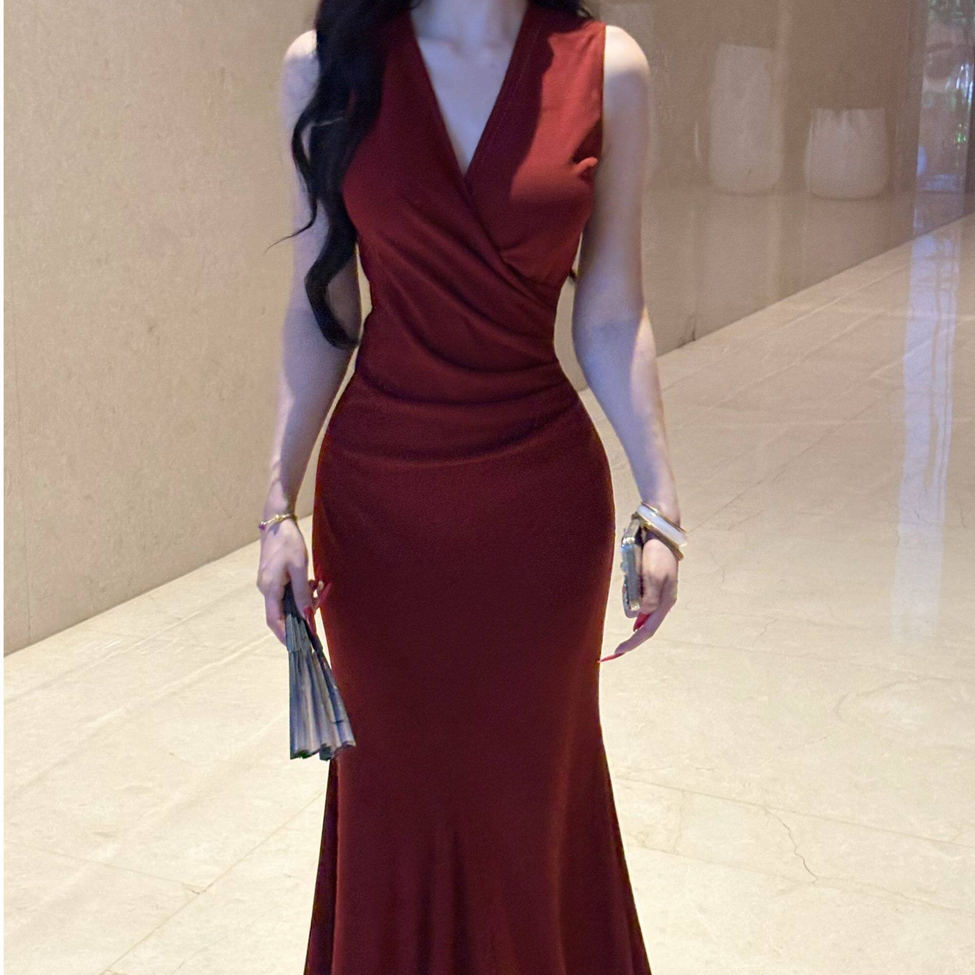 致命牛血红 LHMknk1画报夫人原创自制纯欲针织性感鱼尾连衣裙