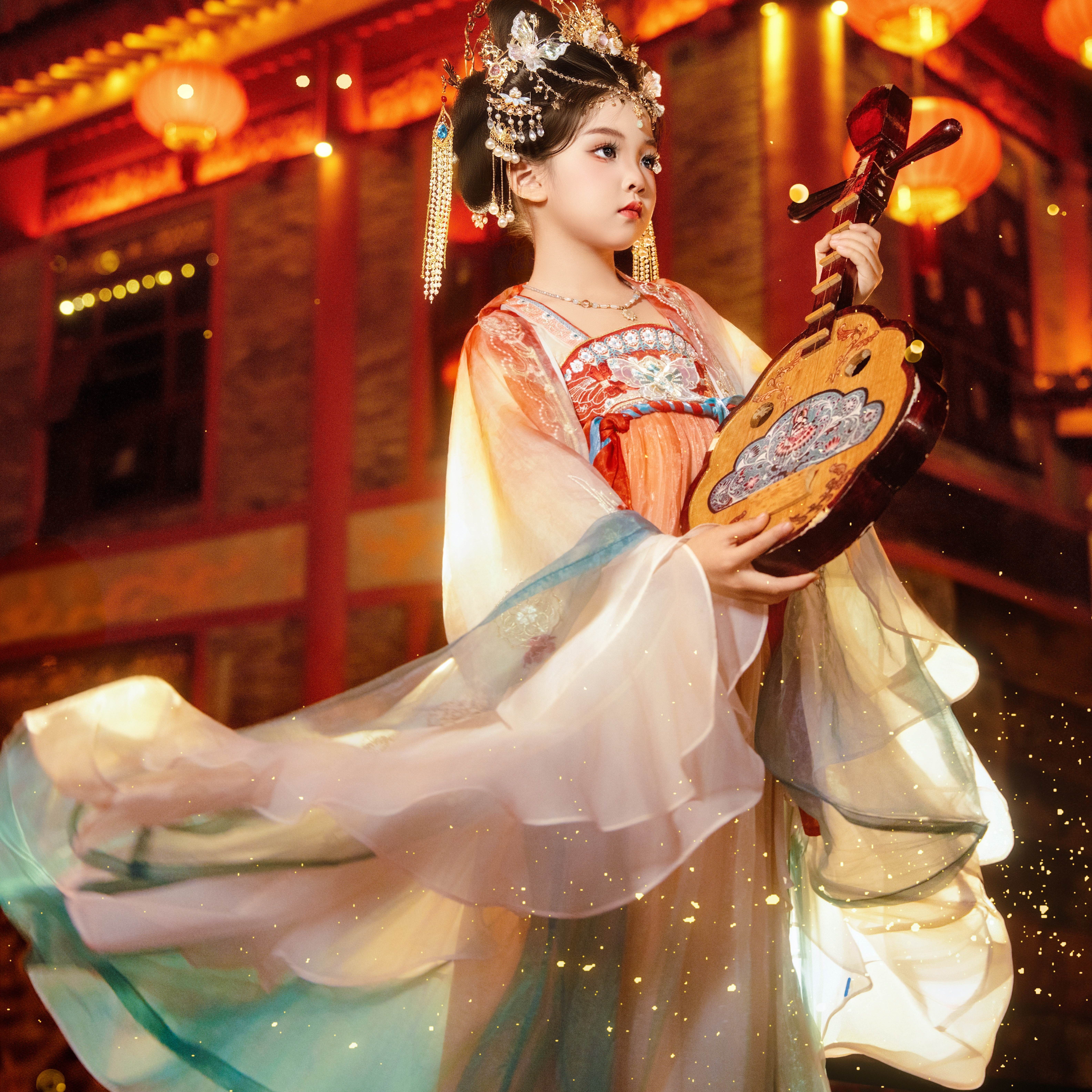 为您提供商品汉服女童国风重工刺绣大袖 渐变小女孩绝美连衣裙唐代破裙诃子裙 衫的详细介绍,