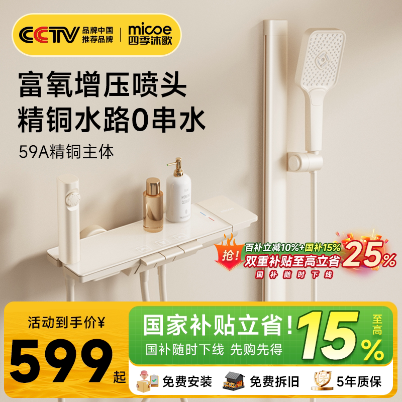 为您提供商品四季 沐歌简易智能花洒琴键无顶喷浴室淋浴花洒套装 百亿9折券的详细介绍,