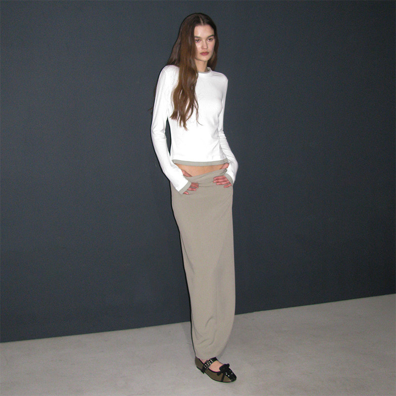 新品 韩国正品 PARTIMENTO 国内现货2025春季 开叉中长半身裙 女装