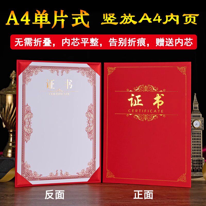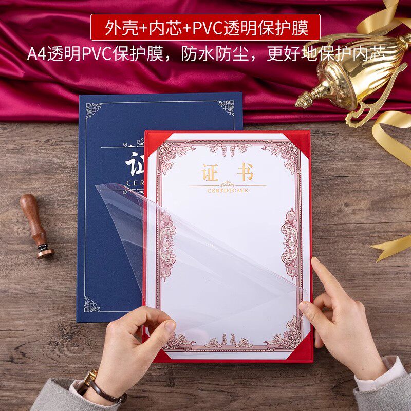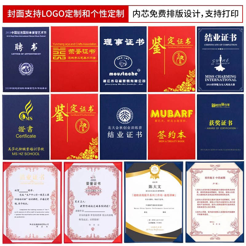 荣誉证书证件书皮纹纸8K奖状烫金a4外壳表扬奖励获奖优秀员工志愿者结业毕业聘书封面保护套外壳内芯定制打印