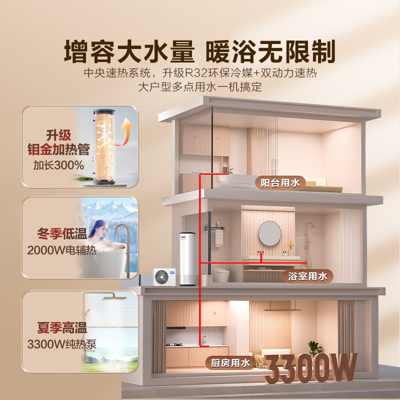 一体 海尔空气能热水器200升300L家用一级能效省电空气源热泵立式