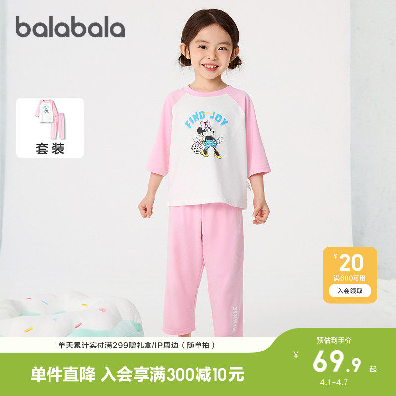巴拉巴拉儿童睡衣套装 夏季 空调服男女童家居服抗菌萌 迪士尼IP由