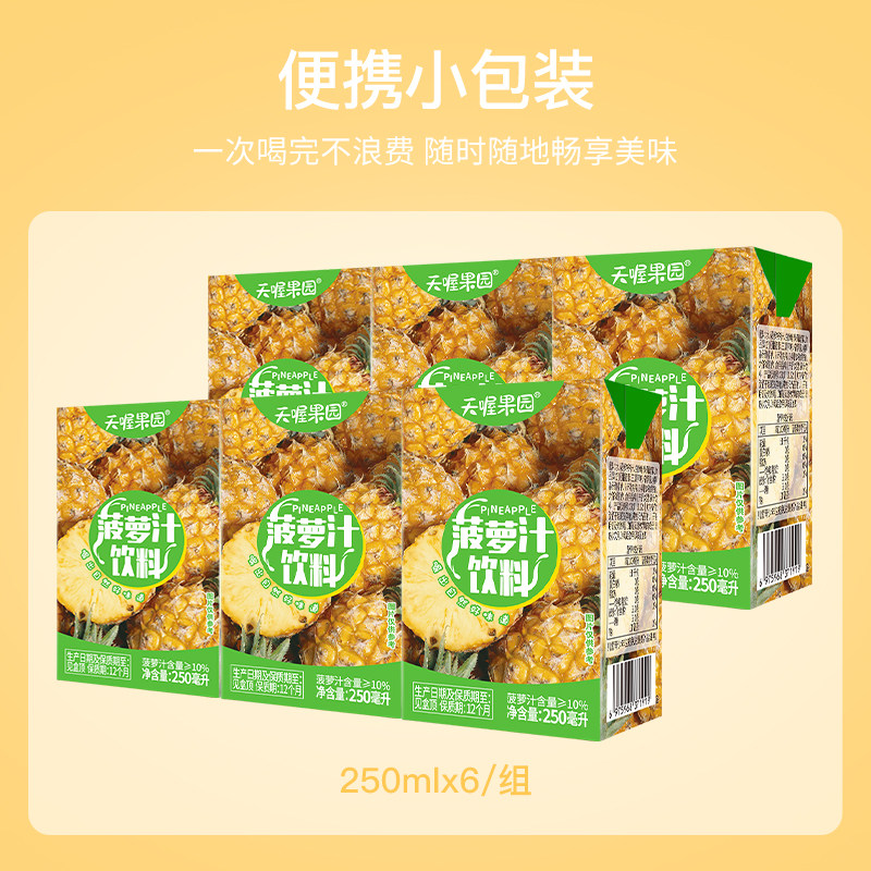 果汁饮料礼盒夏季 饮品果味饮料 6盒 天喔茶庄菠萝汁250ml由