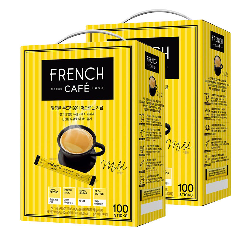 2礼盒装 学生提神三合一速溶咖啡粉100条 韩国进口富然池南阳法式