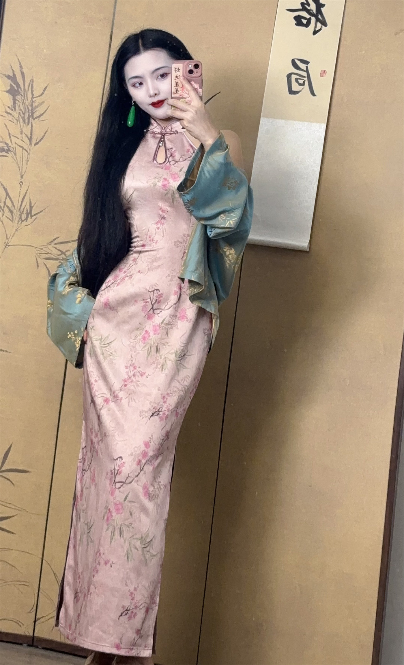画报夫人原创自制新中式 忘春风 国风挖肩水滴旗袍连衣裙