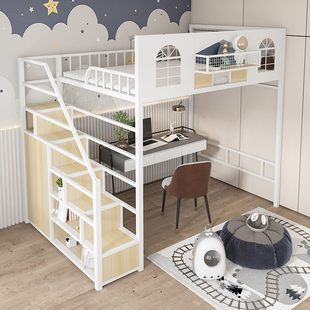 新款 儿童阁楼床 铁艺高架床单上层床小户型省空间现代简约loft复式