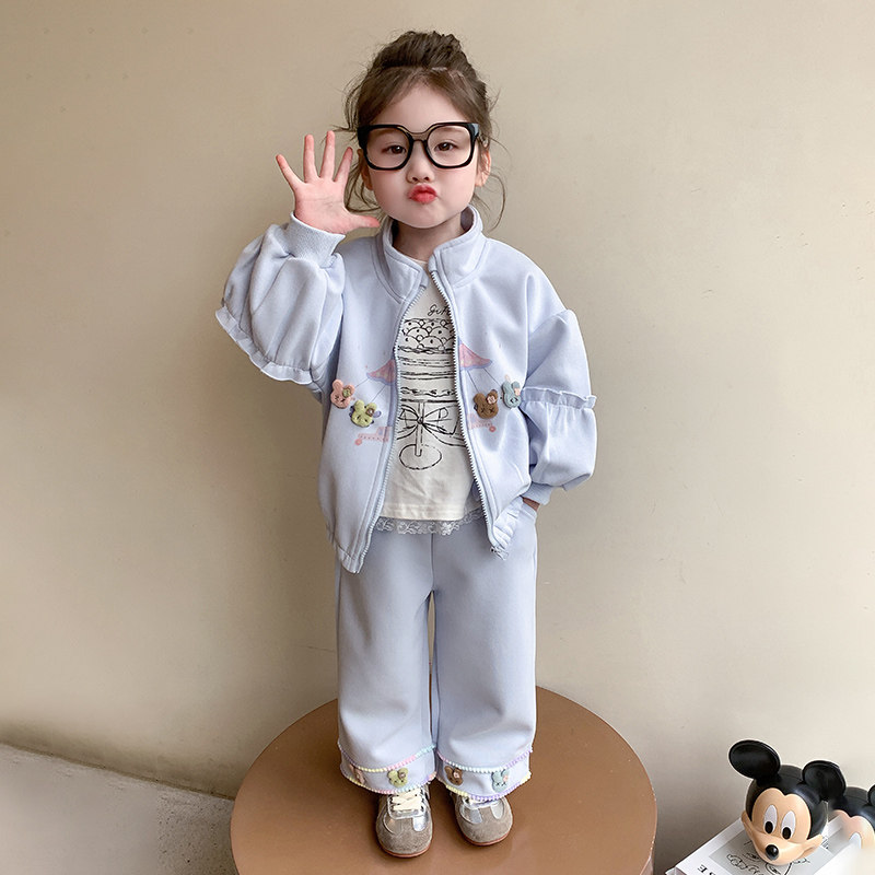 女童春装 2026新款 洋气儿童衣服时髦女宝宝卫衣春秋两件套童装 套装