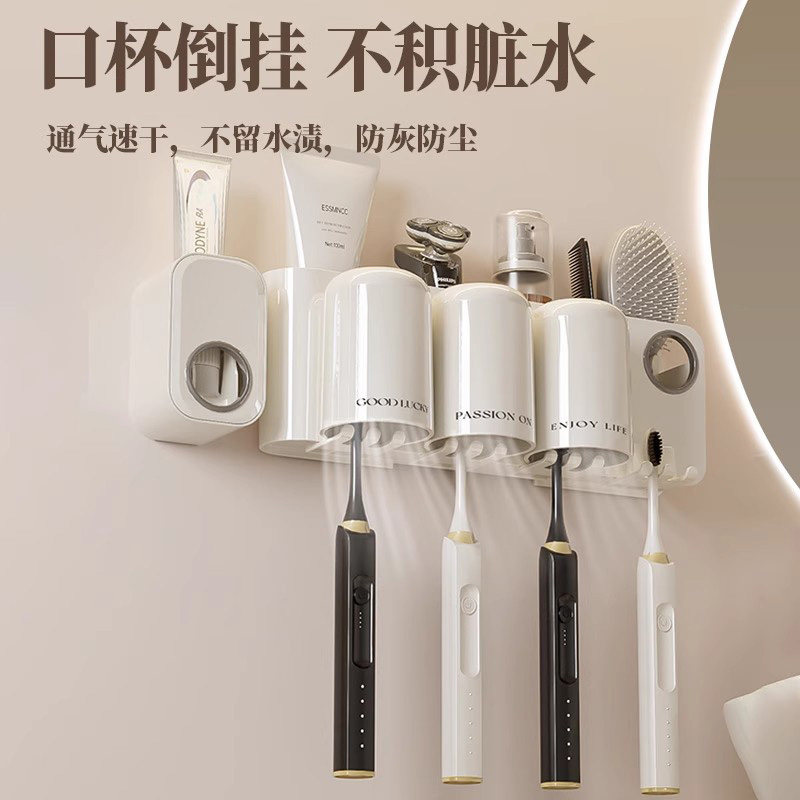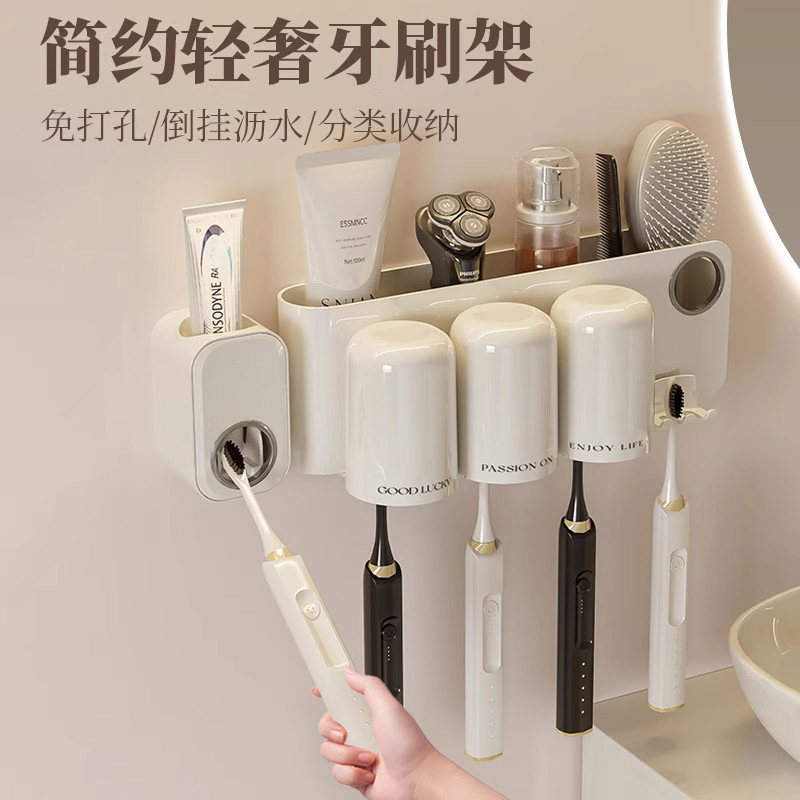 免打孔卫生间牙具座牙膏收纳浴室 牙刷牙杯壁挂置物架电动牙刷套装