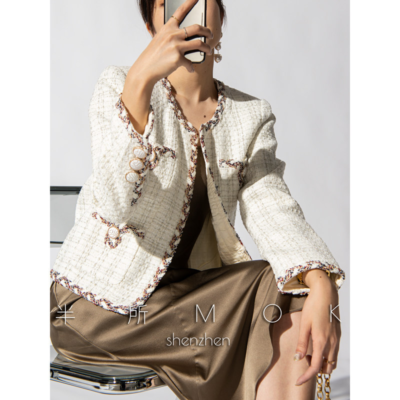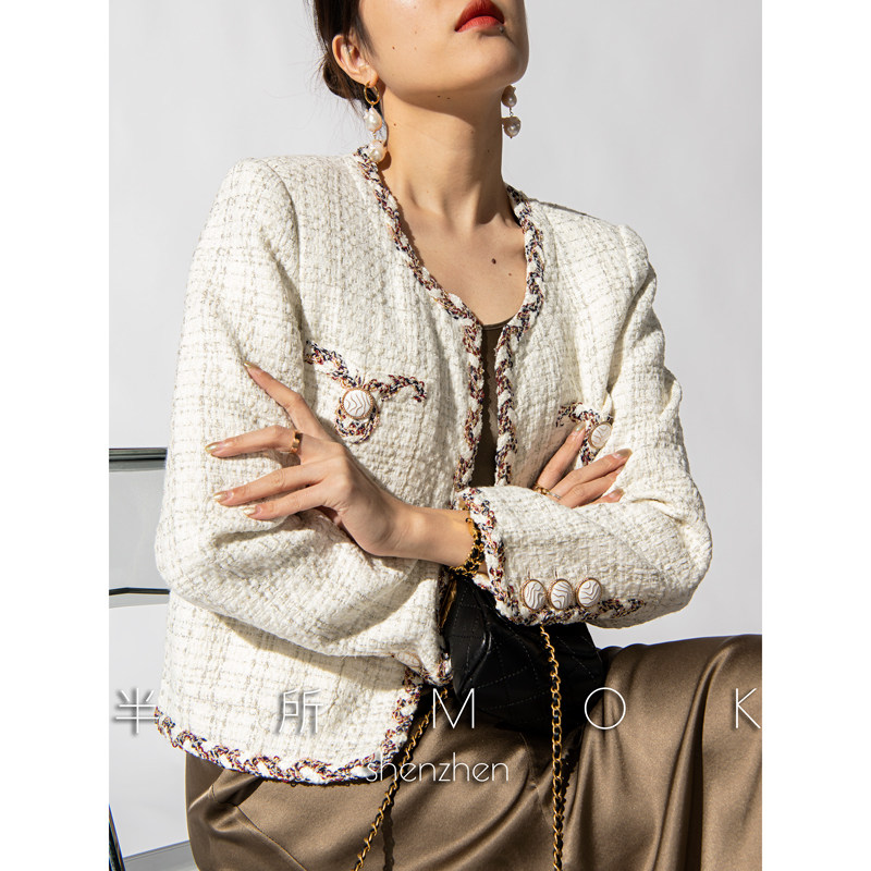 上衣开衫 joc鳗 小香风短外套女短款 半所MOK2023早春羊毛粗花呢法式