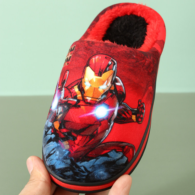 防滑小童宝宝家居室内毛拖鞋 蜘蛛侠 秋冬男童棉拖鞋 迪士尼儿童拖鞋