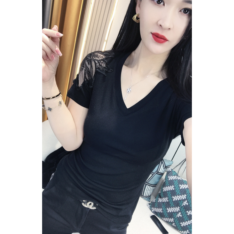⭐小红书推荐⭐修身 洋气上衣 欧洲站夏装 新款 时尚 烫钻T恤女短袖 V领镂空蕾丝小衫,所属T恤分类,由淘宝网挑选推荐!小红书抖音网红同款!哪里有卖修身 洋气上衣 欧洲站夏装 新款 时尚 烫钻T恤女短袖 V领镂空蕾丝小衫和多少钱质量怎么样✅。