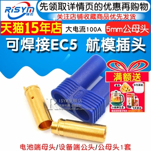 大电流100A 可焊接EC5 航模插头 5mm香蕉插头 铜镀金 动力电池组由