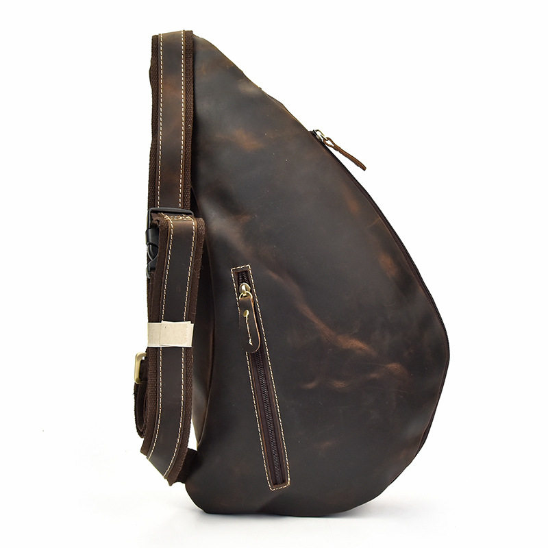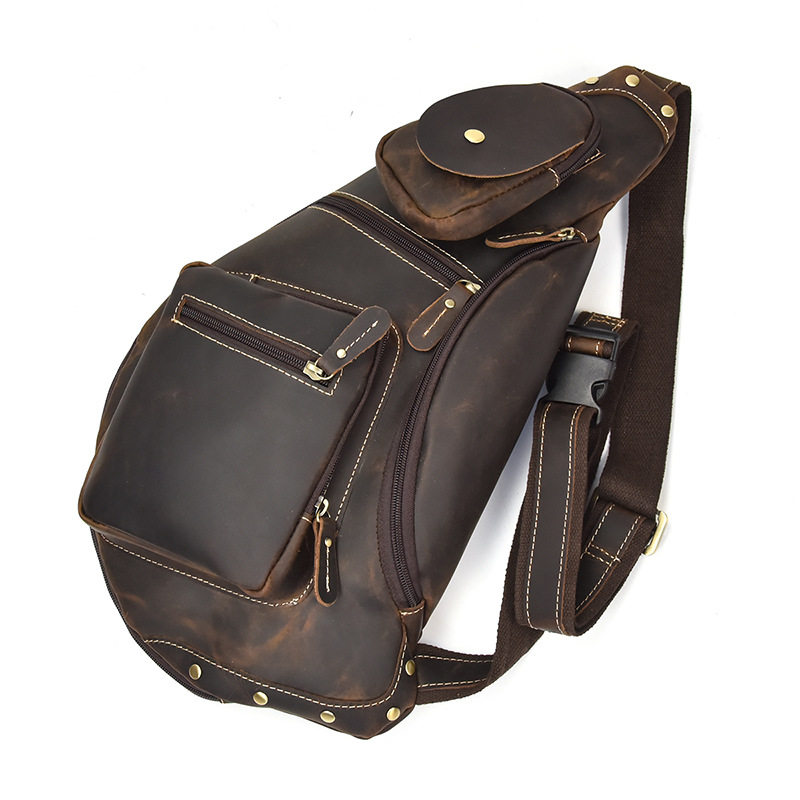 头层牛皮大容量胸包真皮男背包疯马皮单肩斜跨包 原创复古男包新款