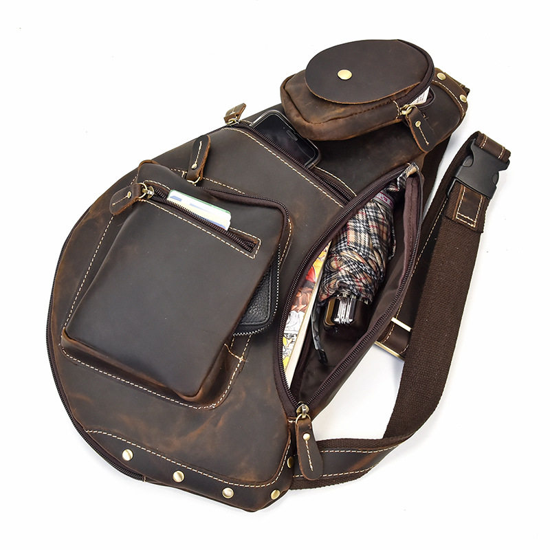 为您提供商品头层牛皮大容量胸包真皮男背包疯马皮单肩斜跨包 原创复古男包新款的详细介绍,