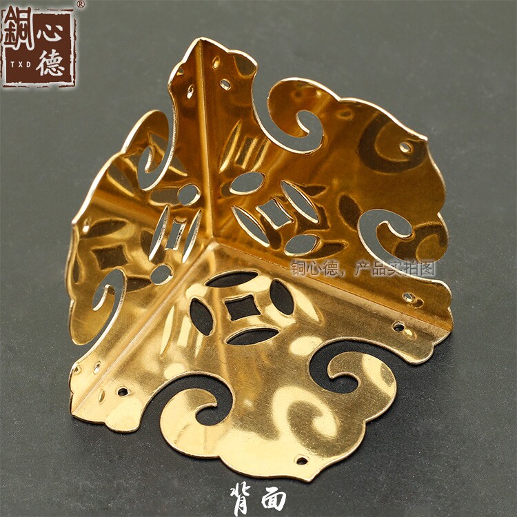 为您提供商品仿古桌子防撞黄铜护角中式 樟木箱铜配件 木箱包角三面角花金属角码的详细介绍,