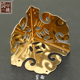 仿古桌子防撞黄铜护角中式 樟木箱铜配件 木箱包角三面角花金属角码由