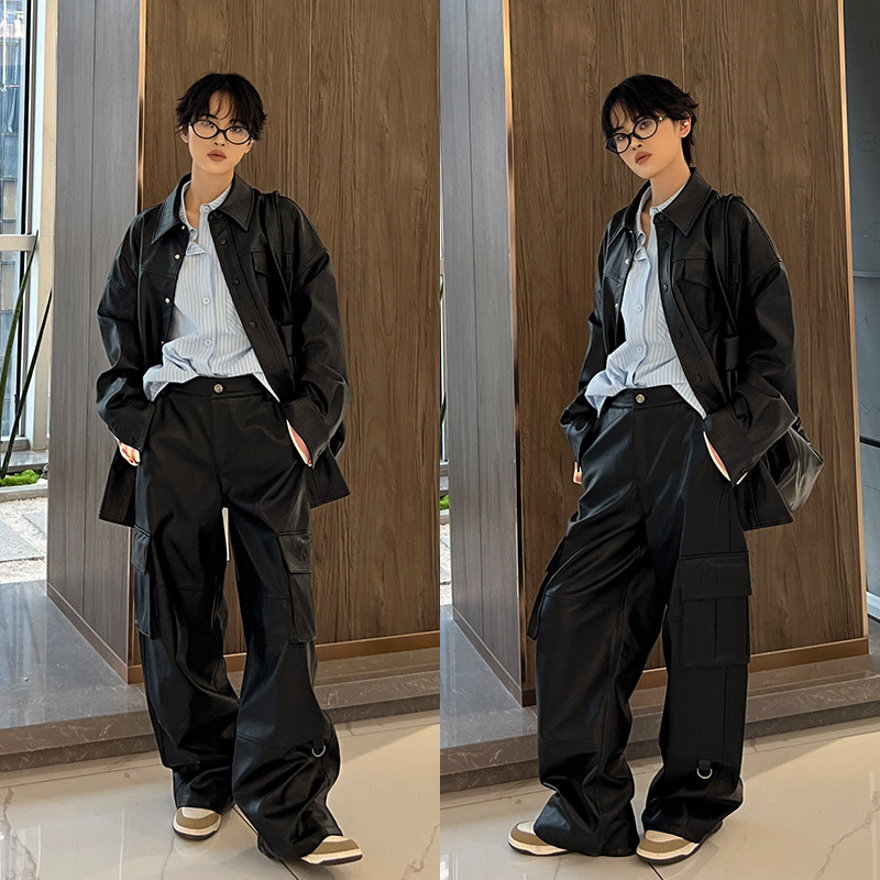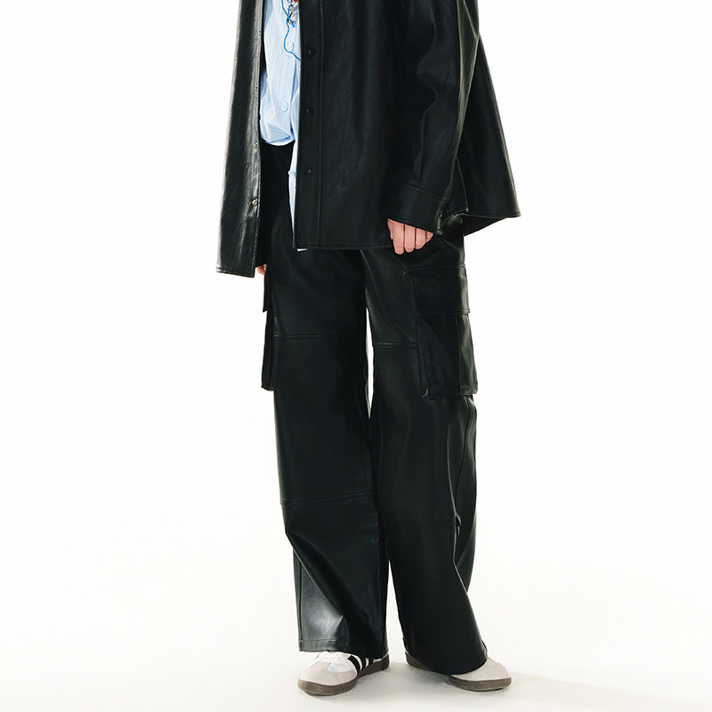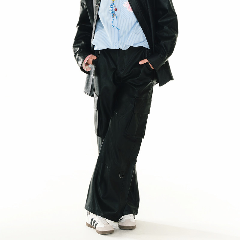 MARTIN秋季 宽松 ANDREA 皮裤 直筒裤 黑色工装 余景天同款 新款