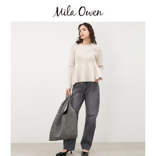 Mila 09WFP234035 Owen秋冬休闲百搭高腰宽松水洗弯刀香蕉牛仔裤由