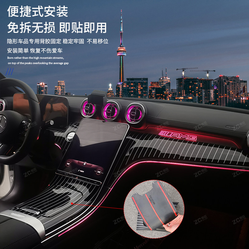 C级C200L中控竖条纹面板23C260L内饰改装 免拆中控饰板 25款
