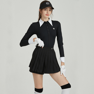 显瘦女装 BG高尔夫女士服装 女时尚 t恤黑色上衣高尔夫套装 女款 长袖