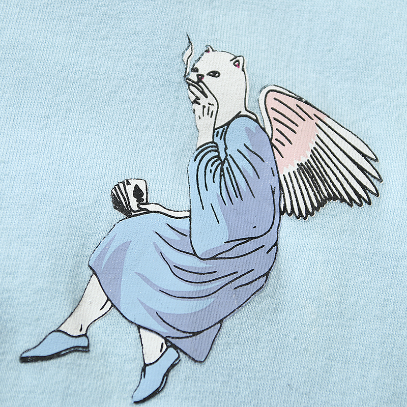 男女情侣款 美国潮牌RIPNDIP 水洗 天堂和地狱 贱猫中指猫短袖 T恤