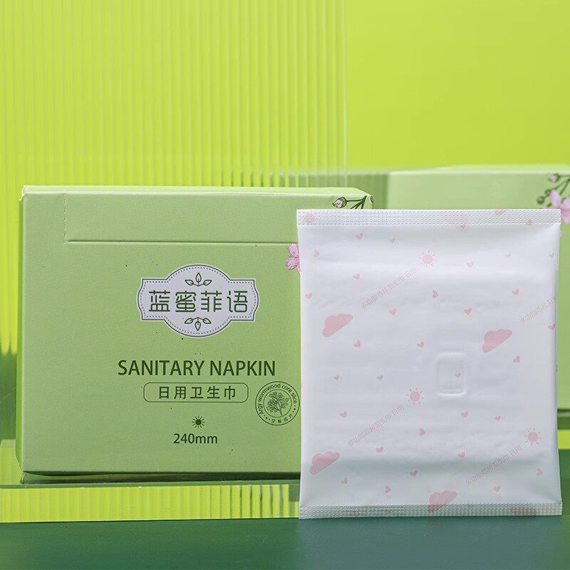 蓝蜜菲语艾草芯片棉柔日用加长夜用姨妈巾干爽护垫超薄卫生巾