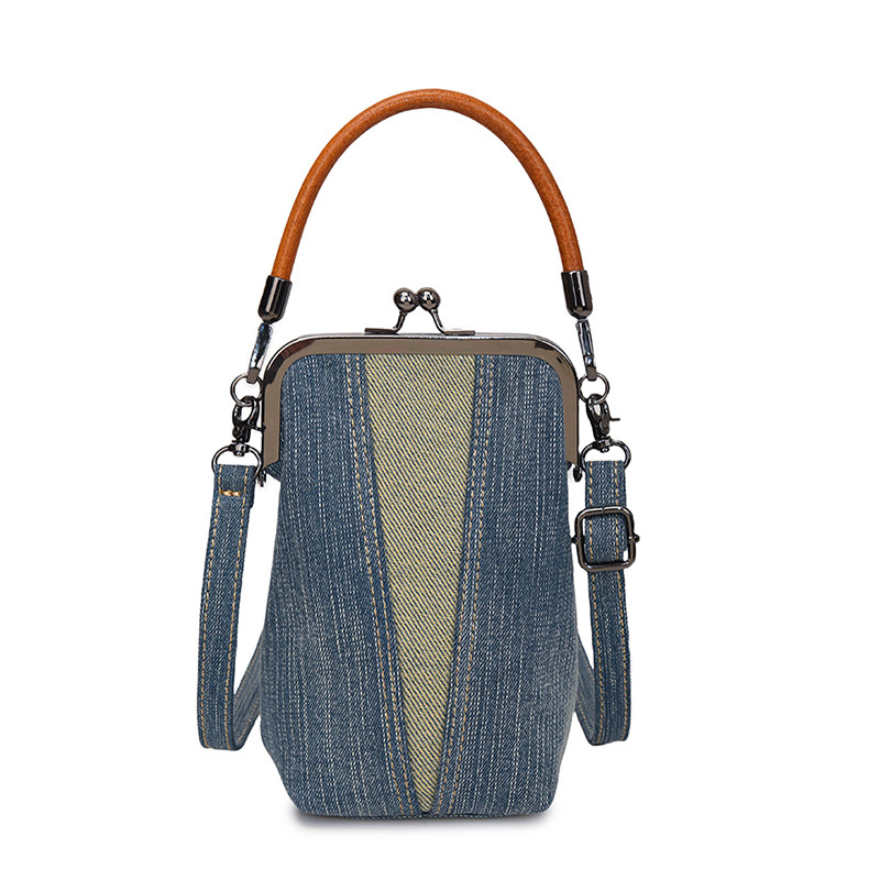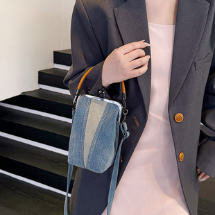 沐木良品原创手工小包女复古撞色单肩斜挎包牛仔包手机包手提包包