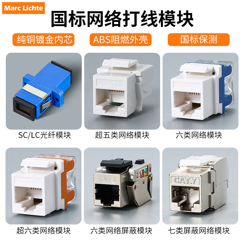 英曼超六类网络模块万兆金属屏蔽免打6类千兆五类电话语音电脑网线面板对接头插座屏蔽RJ45水晶头插口母座CAT