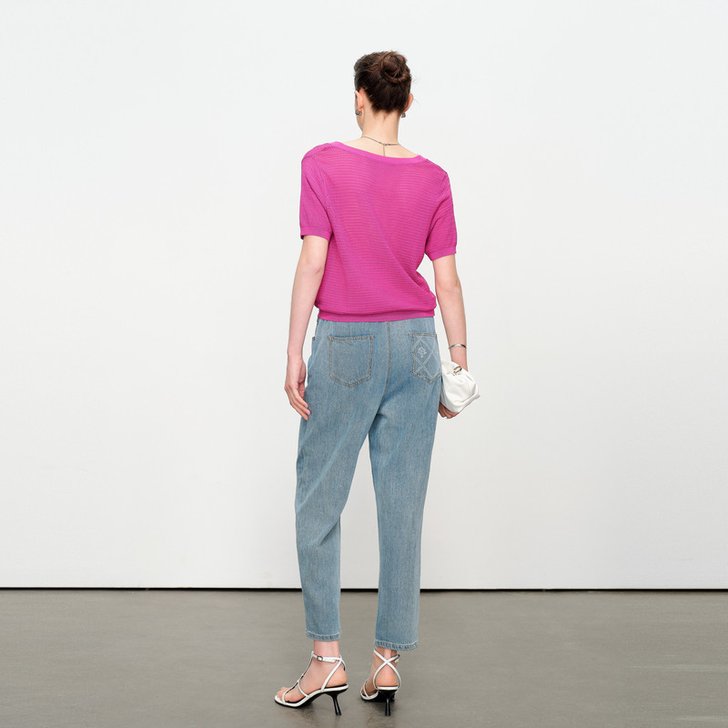 老爹裤 婉甸2025夏季 新品 幻蓝色长裤 1242X01RS1 牛仔裤由