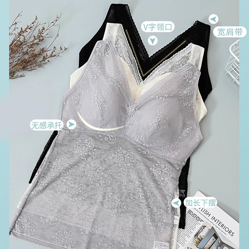 猫人水光蕾丝睫毛打底吊带背心女带胸垫内衣显瘦 刘亦菲同款