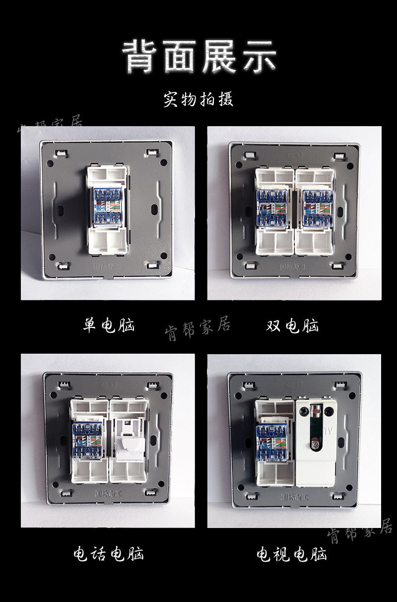 千兆六类电视电话电脑直通网络网线插座面板单双孔网口水晶头直插
