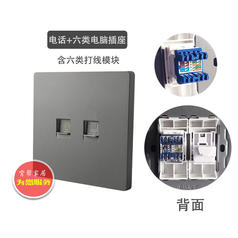 6六类 千兆网络插座暗装 打线模块 开关面板86型灰色 电话电脑插座