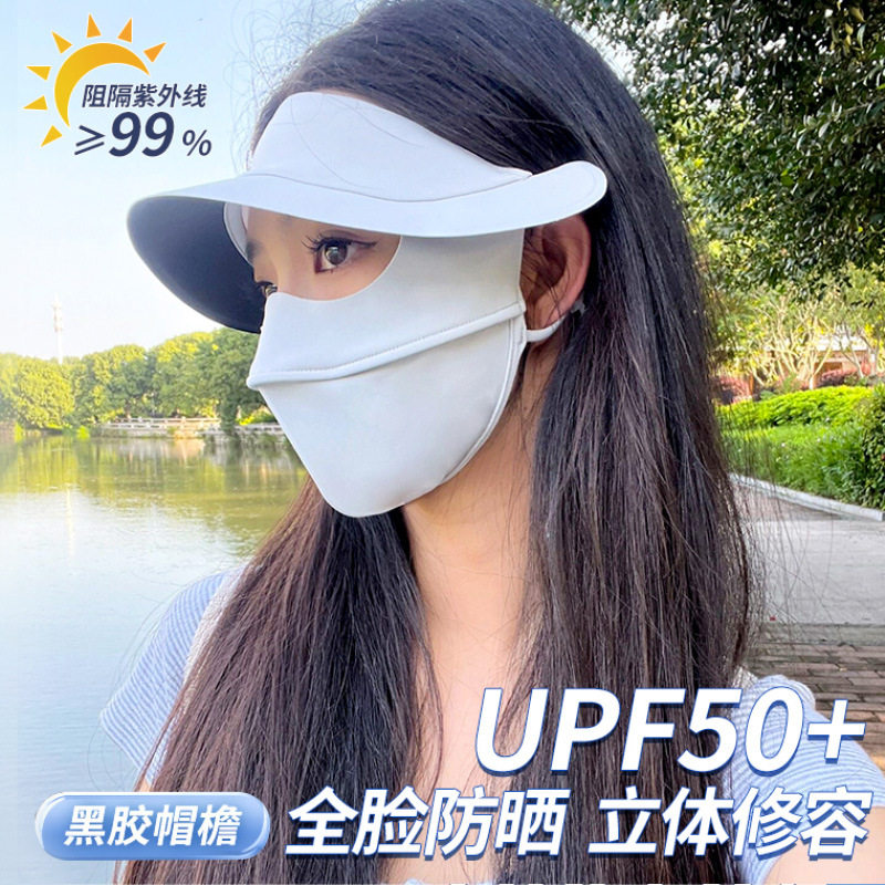 蕉下帽檐脸基尼冰丝骑行遮阳防晒帽口罩一体全脸防紫外线医美面罩