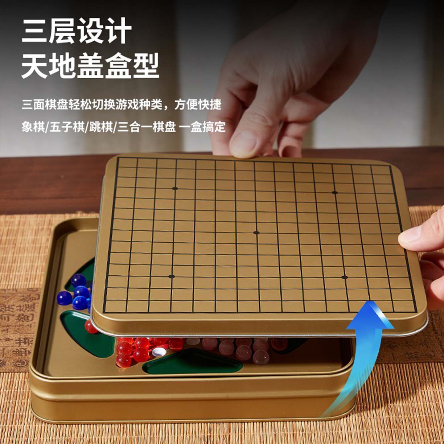 三合一磁吸五子棋中国象棋跳棋便携益智学生礼物多功能迷你棋盘盒由