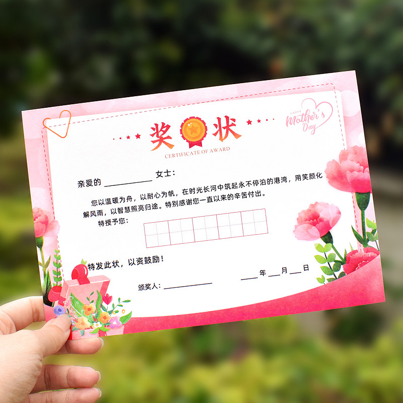 为您提供商品知砚母亲节快乐A5奖状送妈妈女老师礼物田字格手写空白祝福表扬信颁奖趣味感恩优秀家长加厚创意荣誉证书卡的详细介绍,