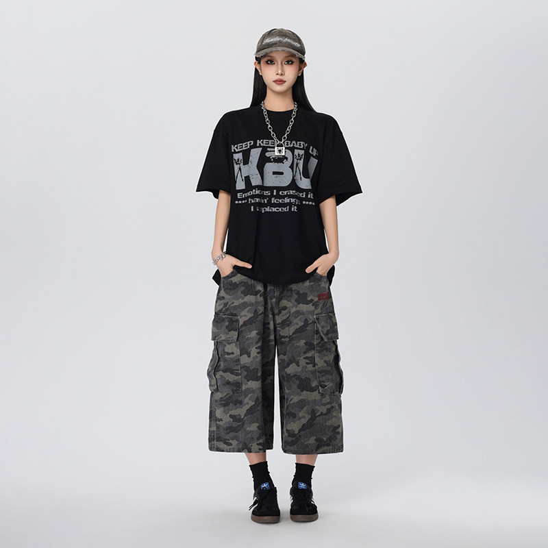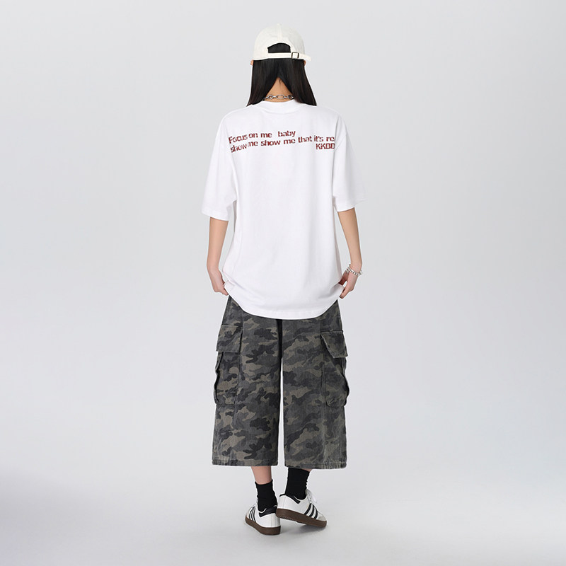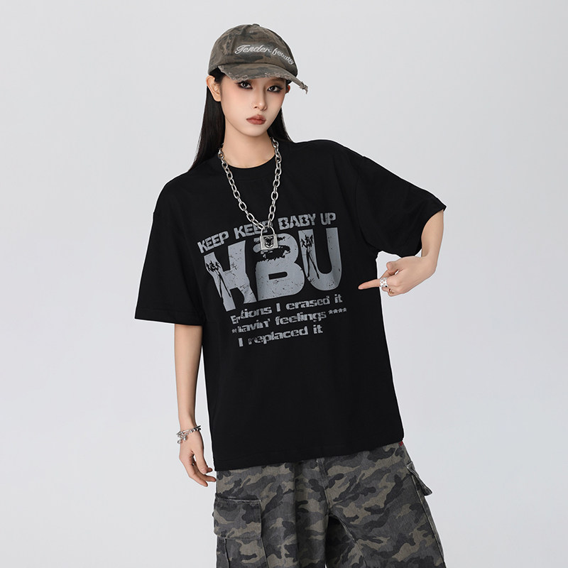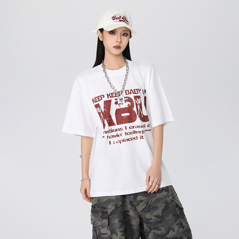 KKBBU美式 T恤男女夏季 新款 街头宽松bf情侣上衣潮 复古字母印花短袖
