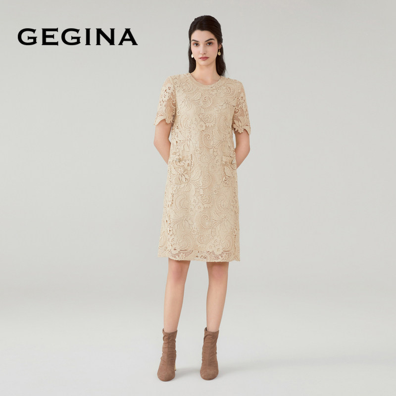 为您提供商品GEGINA吉吉娜女装 镂空蕾丝连衣裙直筒中裙绣花气质裙子 春夏新品的详细介绍,