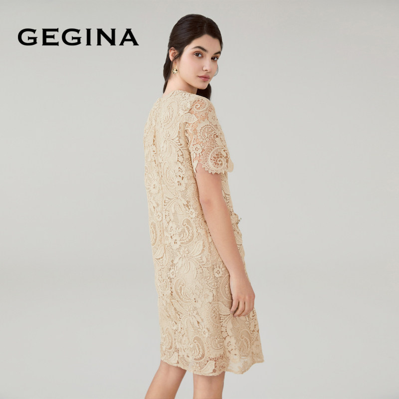 GEGINA吉吉娜女装 镂空蕾丝连衣裙直筒中裙绣花气质裙子 春夏新品