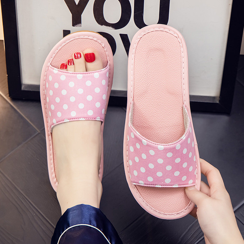 为您提供商品全牛皮软底纯棉圆点居家布艺拖鞋 防臭抗菌室内夏天静音家用 女夏季的详细介绍,