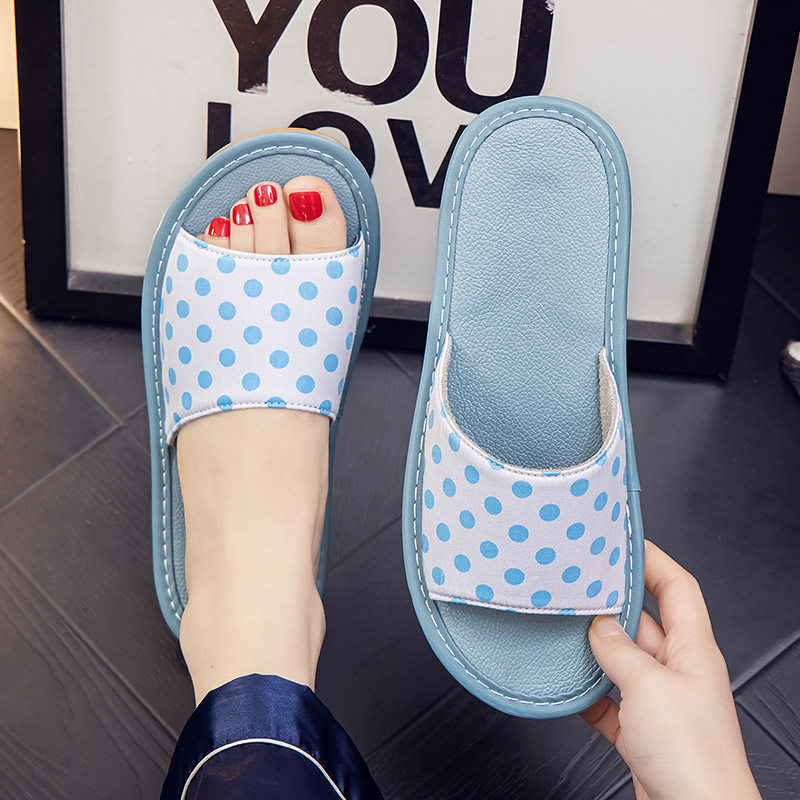全牛皮软底纯棉圆点居家布艺拖鞋 防臭抗菌室内夏天静音家用 女夏季由