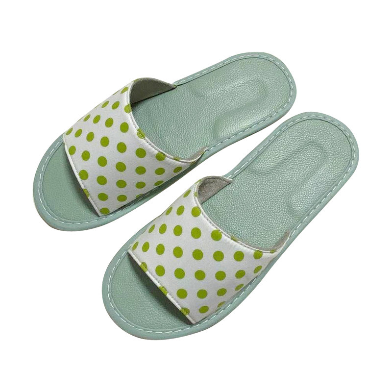 全牛皮软底纯棉圆点居家布艺拖鞋 防臭抗菌室内夏天静音家用 女夏季