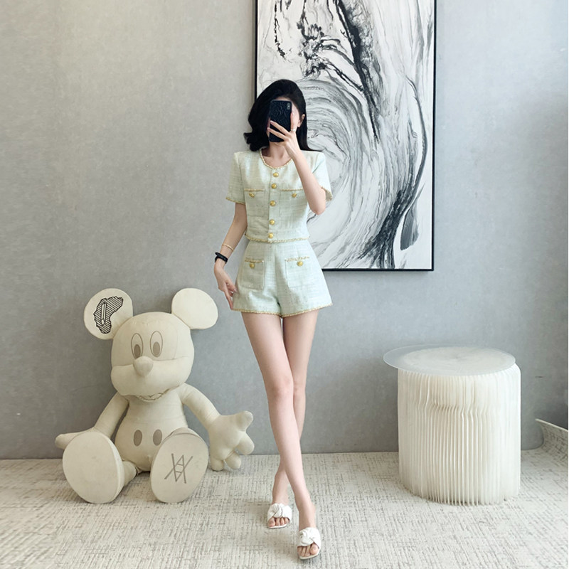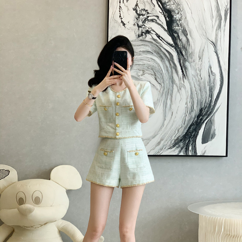 女高级感洋气休闲短袖 2026夏季 新款 气质小香风套装 两件套 上衣短裤由